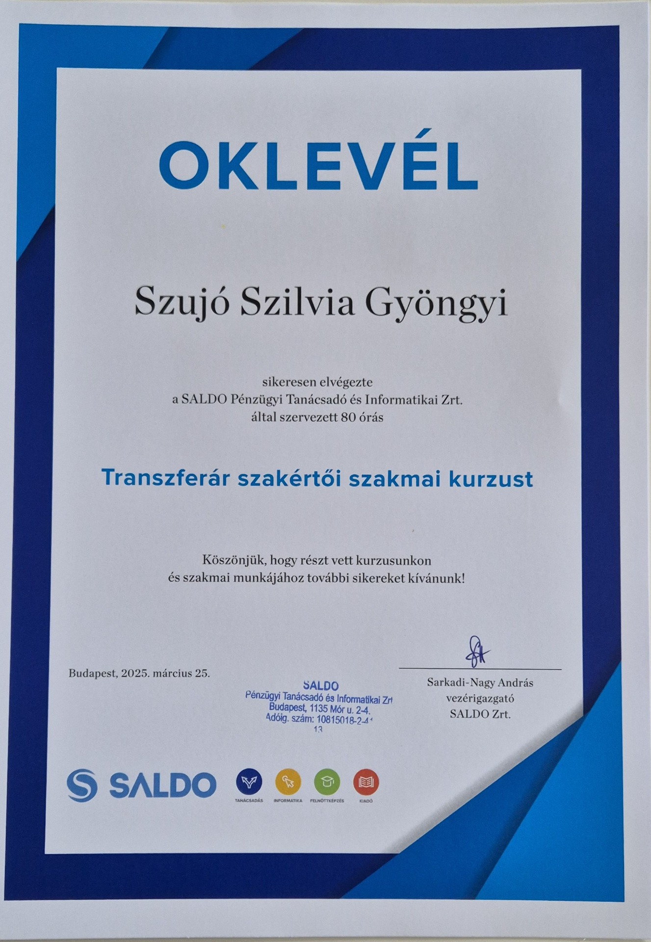 Örömmel osztom meg veletek, hogy a mai napon átvettem a Transzferár szakértői szakmai kurzus elvégzését igazoló oklevelemet. 🎓